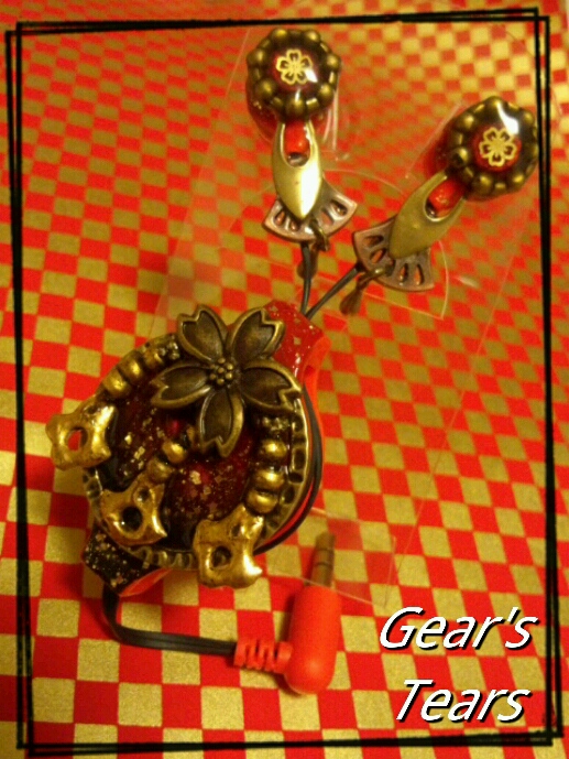 イヤホンなのですが、さらに紅と黒と金のペイントをして
